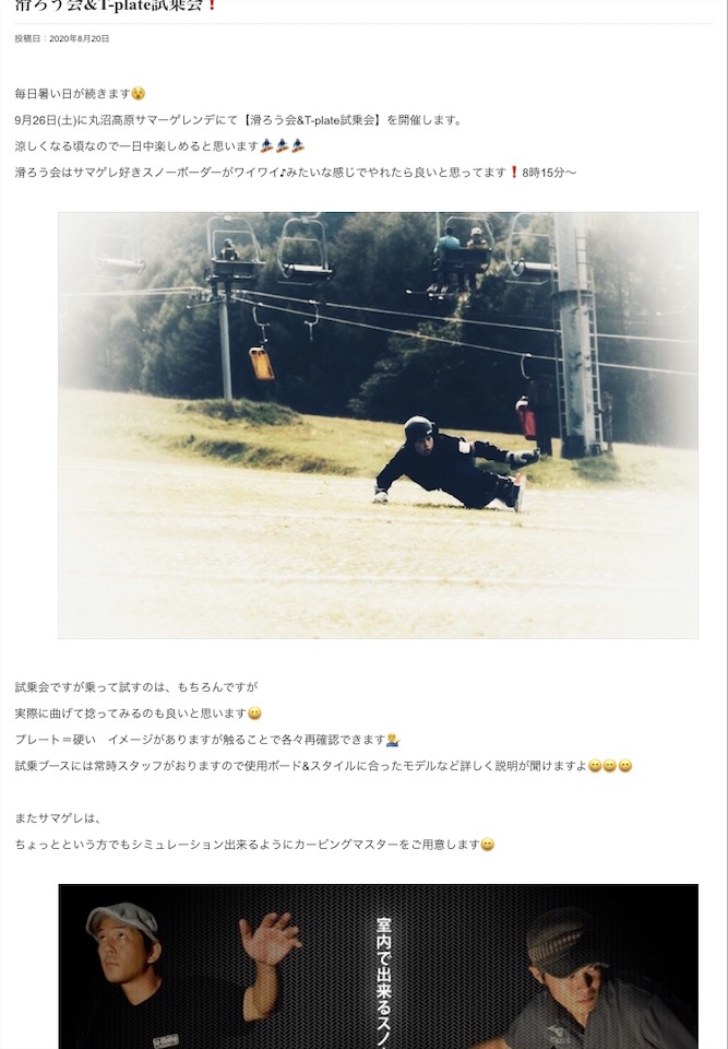サマゲレ大好きイッチー参加の滑ろう会&T-plate試乗会を9月26日(土) 丸沼高原スキー場にて開催します。